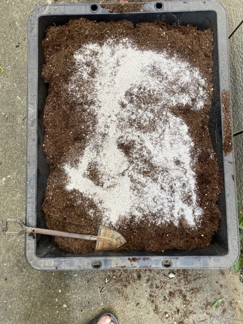 家庭菜園の土を出して石灰と竹炭麹菌を入れて2週間寝かせて次を植える準備に入りました