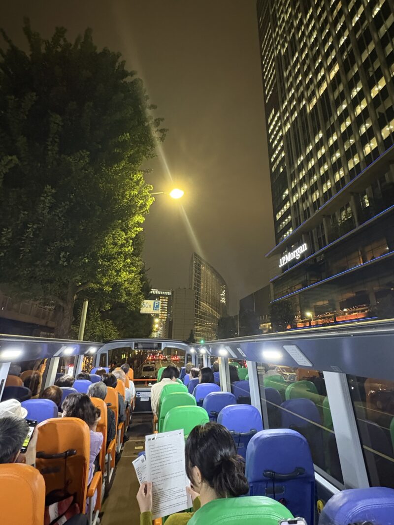 向かった先は ライトアップされたレインボーブリッジをオープンバスで
