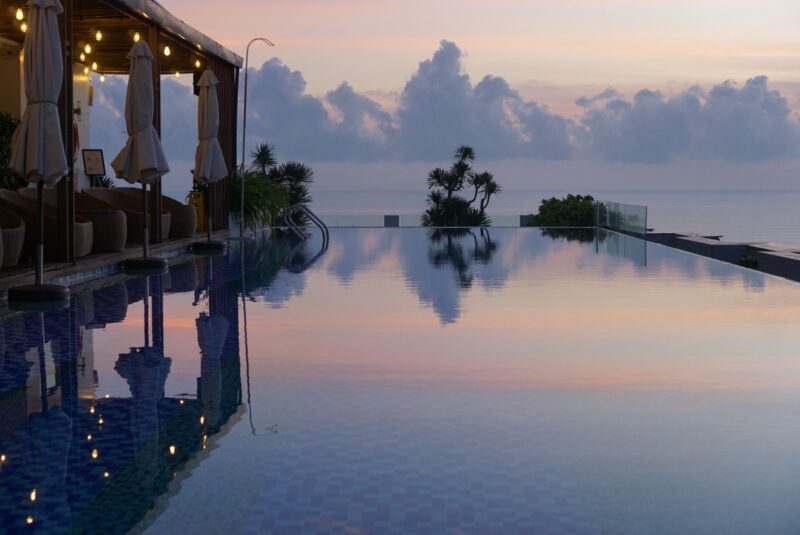 ホテル屋上のプールへ